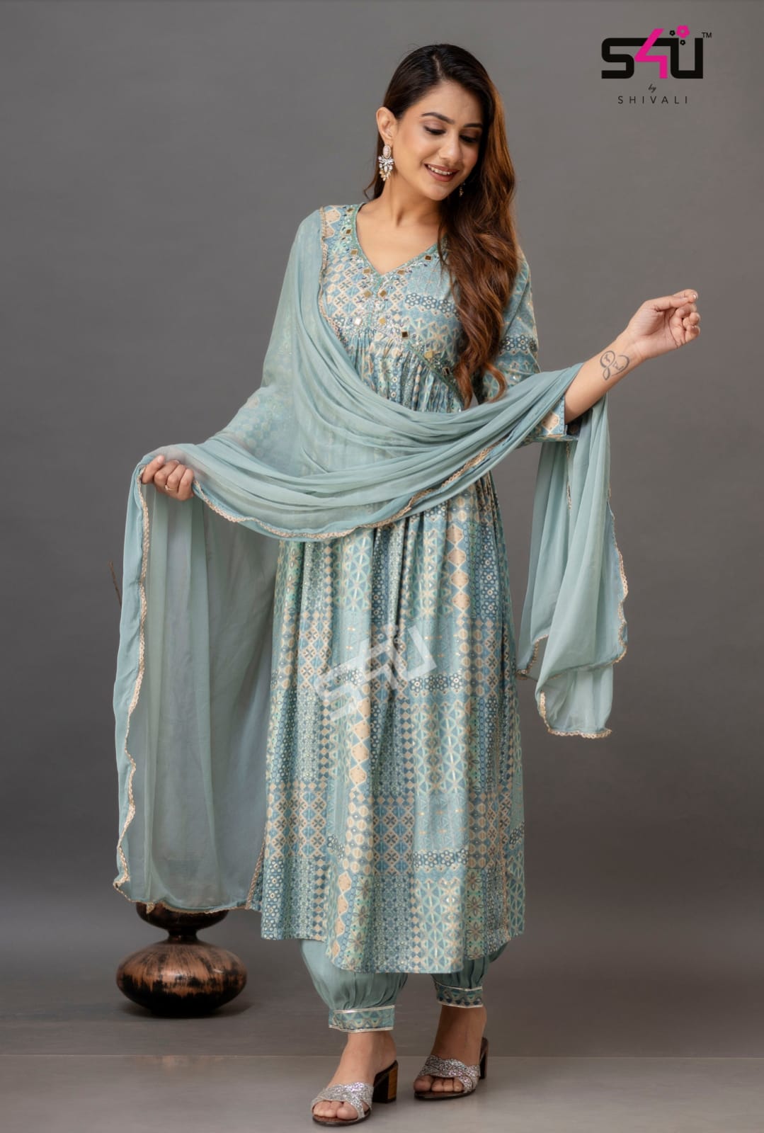 The vibrant color and elegant silhouette of the outfit complement the festive spirit and cultural celebrations.