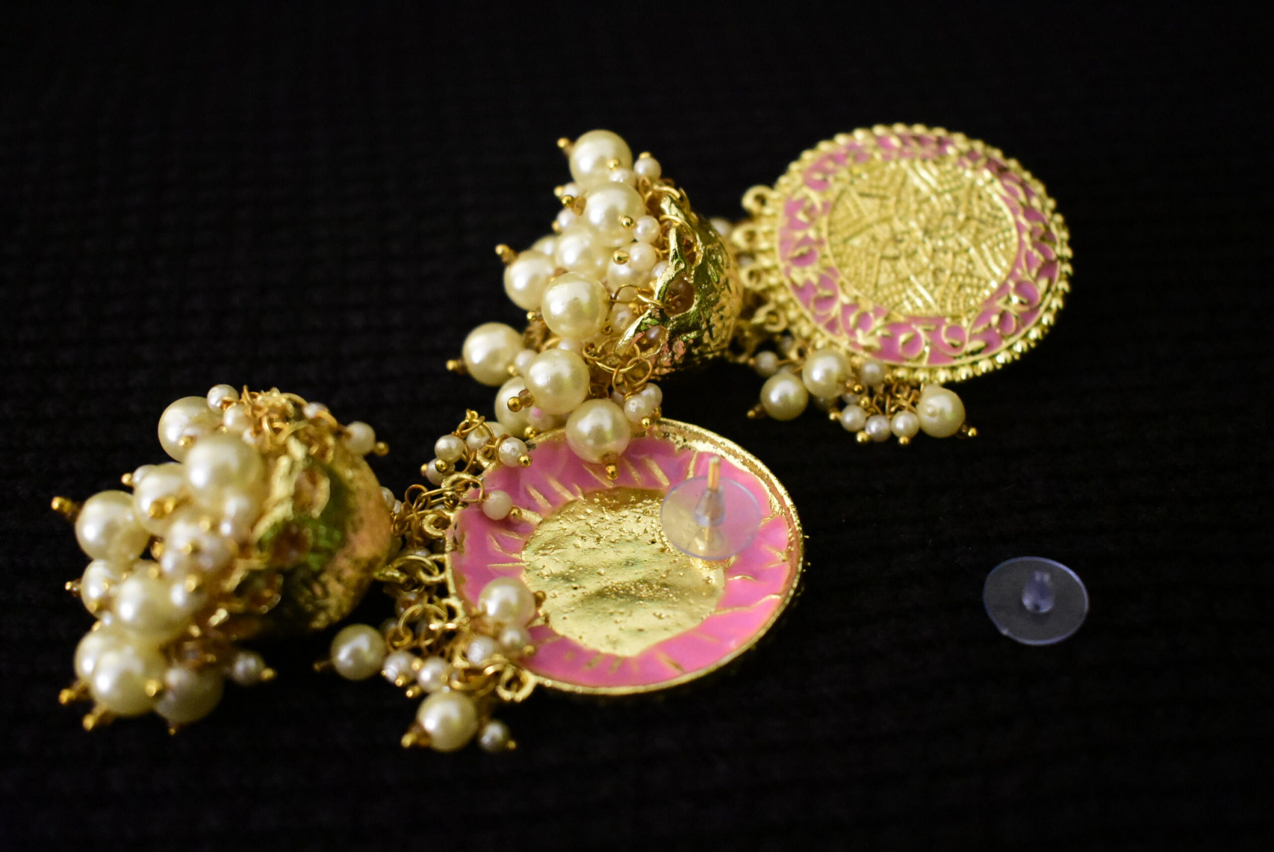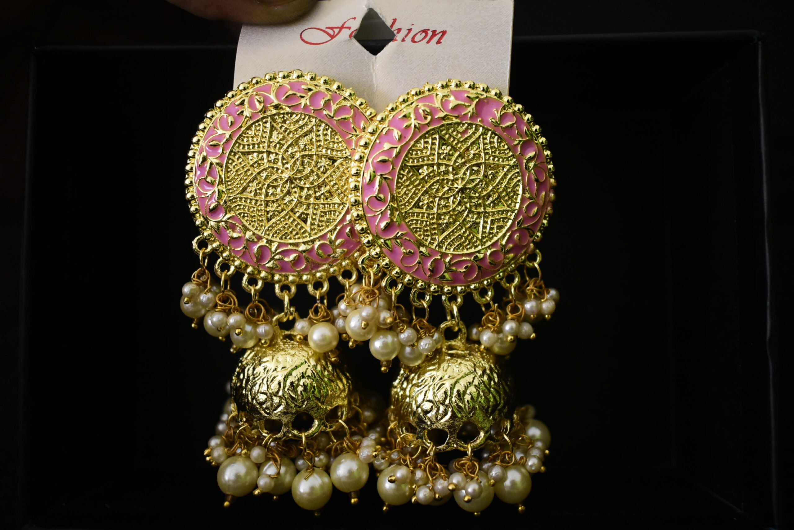 Indian Fashion alloy Jewelry Earrings Pink Round with Beads Gift item
