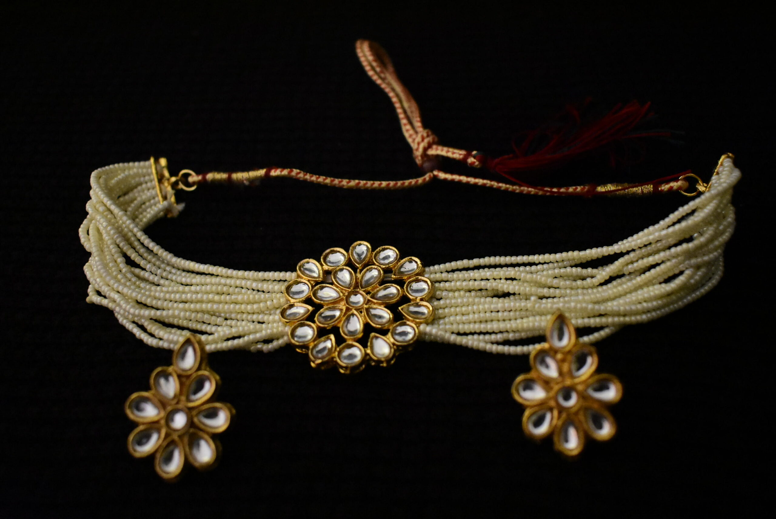 Indian Style Jewellery set with earnings, laces, white pearls. Fashion Alloy Metal